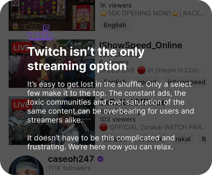 We're global, accessible, fair, and built with the voices and best interests of creators and streamers in mind.